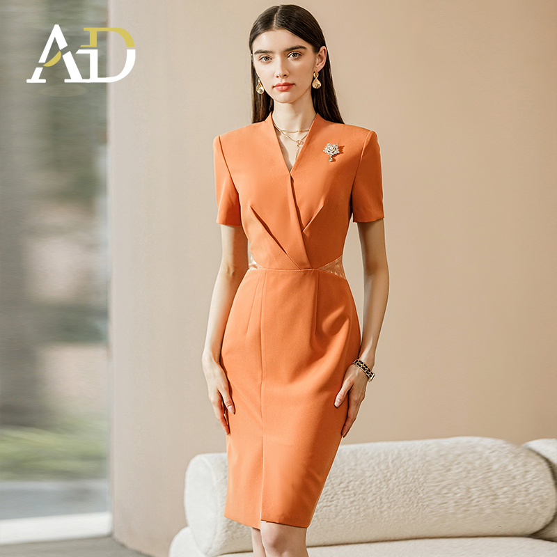 廠商直銷批發橙色女士連身裙 辦公室著裝 廣告禮服 女士正式​​禮服