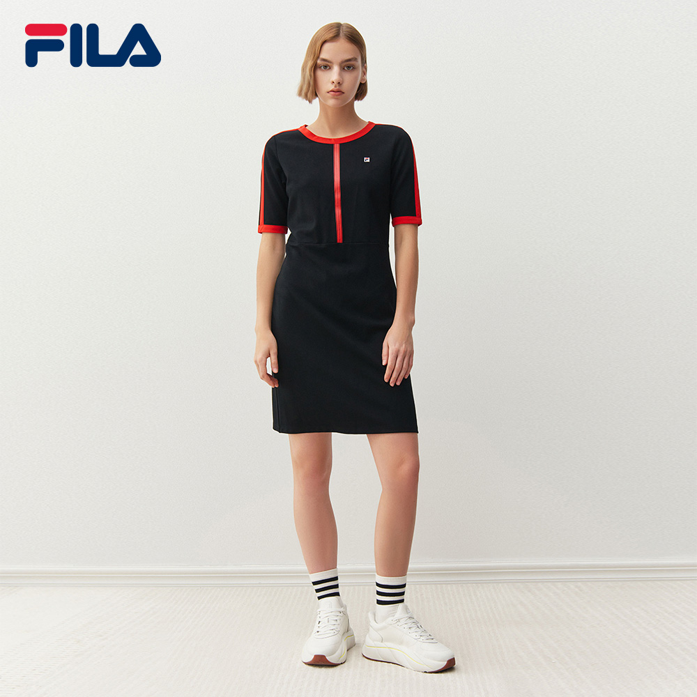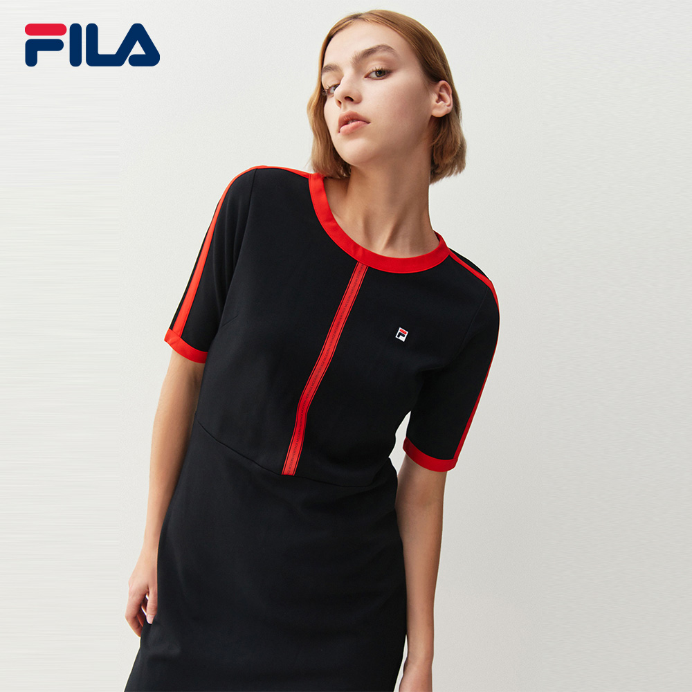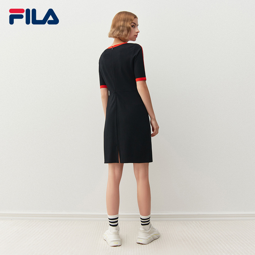 線上獨家女士刺繡 F-box Logo 後開衩連身裙
