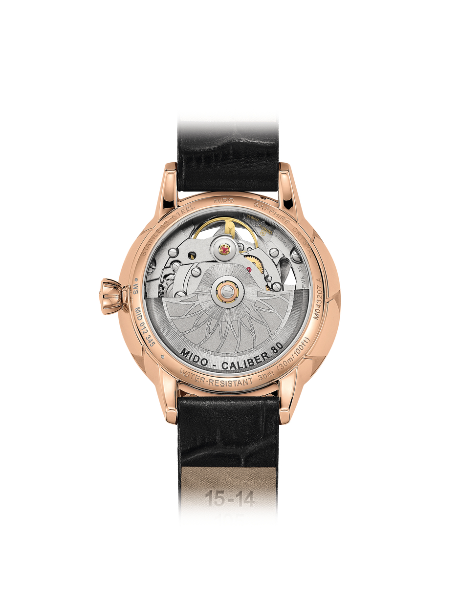For the first time, Mido has created a skeleton Swiss watch especially dedicated to women. The new and audacious Rainflower Blossom features delicate lines, directly inspired by the lotus flower shape of Singapore’s contemporary ArtScience Museum. Resolutely feminine petals are interlaced along the edges. Adorned with an openwork flower, the captivating dial reveals at its centre the Caliber 80 – the latest-generation automatic movement, whose mainplate has been specially skeletonised and decorated. It invites the wearer to marvel at the passing of time with audacityand elegance.