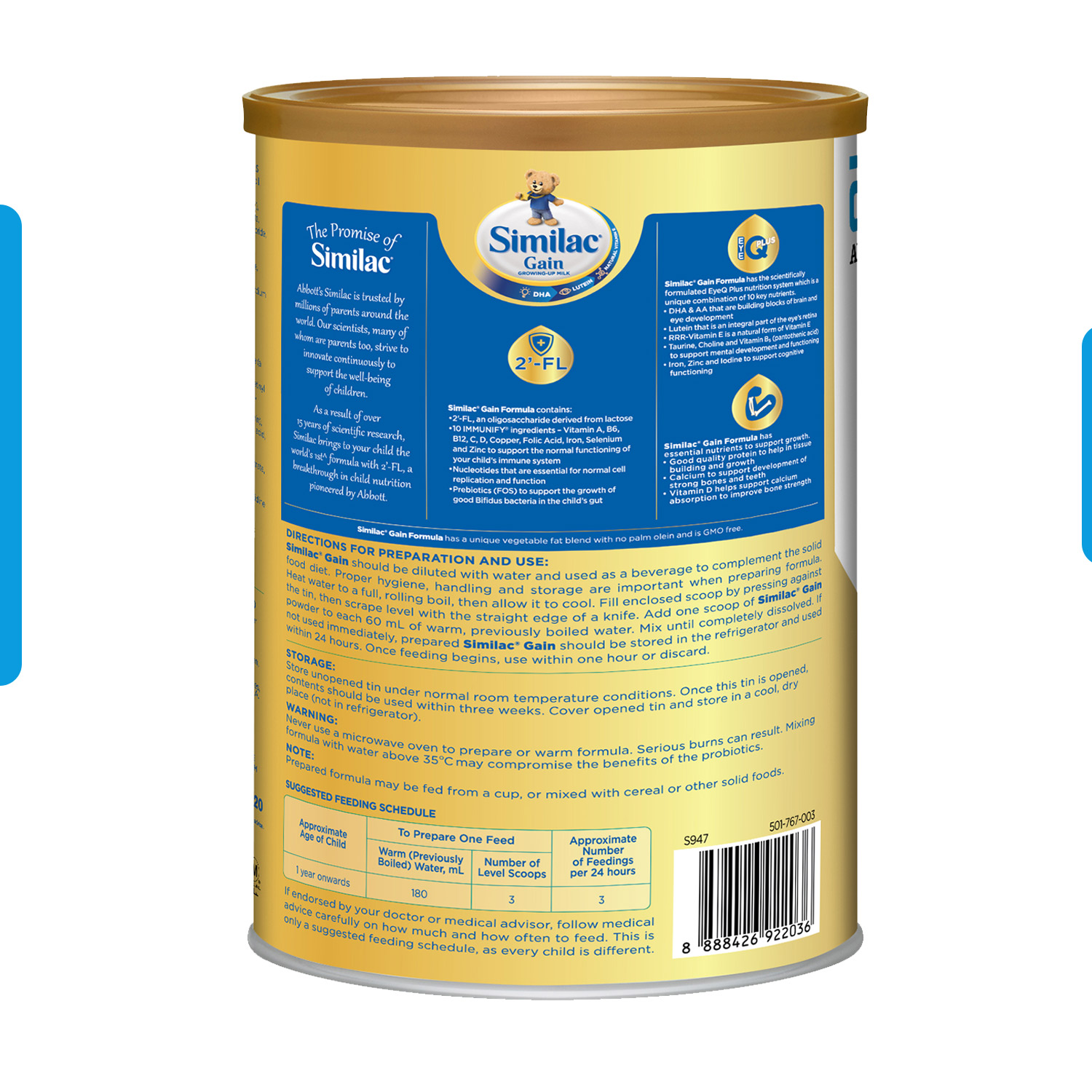 【6 包】雅培® 3 段 Gain 成長型嬰兒奶粉配方 2'-FL 1.8kg(1 歲以上)