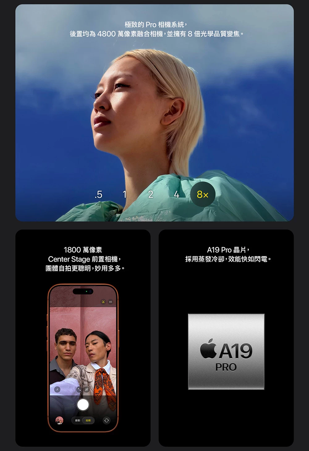 ●極致的 Pro 相機系統,後置均為 4800 萬像素