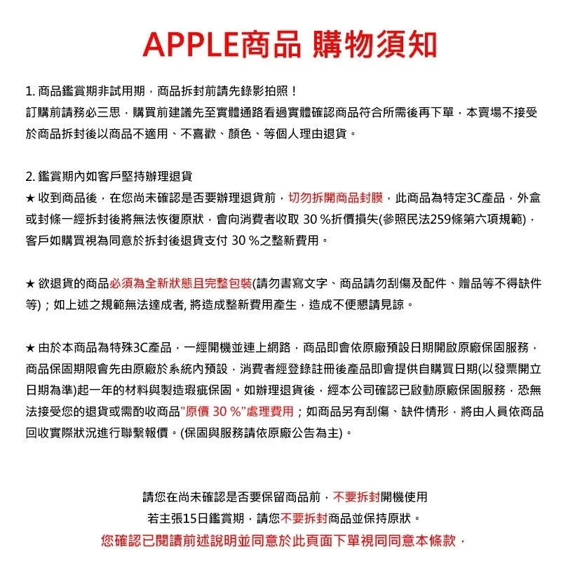 Apple商品自序號開通起由Apple提供原廠非人為瑕疵保固一年,保固範圍請參考商品說明書,或至官網查詢(https://www.apple.com/tw/),以Apple原廠保固條例為最終依據。