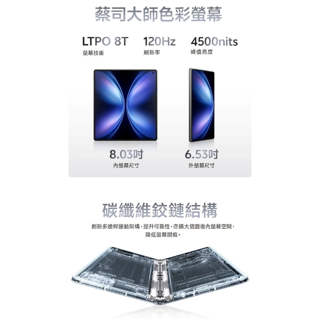 ◎ 8.03 吋2,480 x 2,200pixels 解析度AMOLED 内页萤幕(120Hz 萤幕更新率)